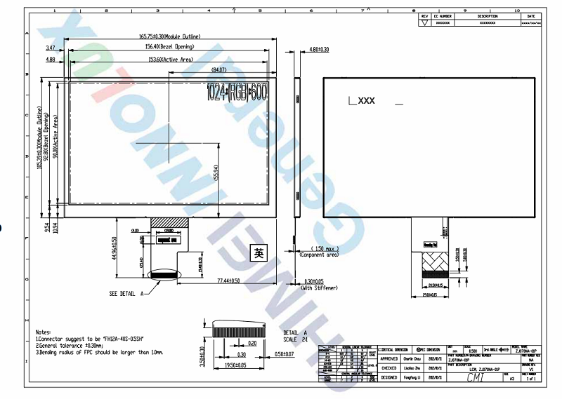 品名: 7寸群創1024*600準工業液晶屏