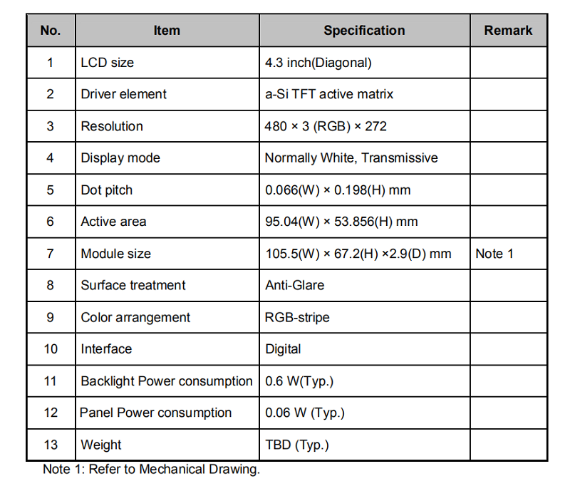 品名: 4.3寸液晶屏