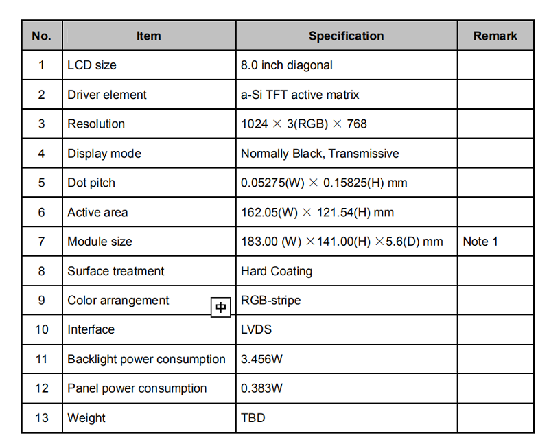 > 產(chǎn)品中心 > 宇華液晶屏 > 8寸高清液晶屏(1024*768)